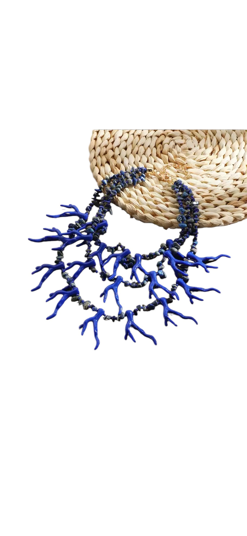 Add a pop of color to your outfit with our Blue Coral Necklace. This vintage-inspired piece features a multilayered design with vibrant coral beads, perfect for adding a touch of bohemian flair to any look. The bold and eye-catching necklace is sure to make a statement at any party or event. Crafted with high-quality materials, this choker necklace is both durable and stylish. Elevate your fashion game with this must-have accessory from our collection. Shop now and add a touch of retro charm to your jewelry collection.