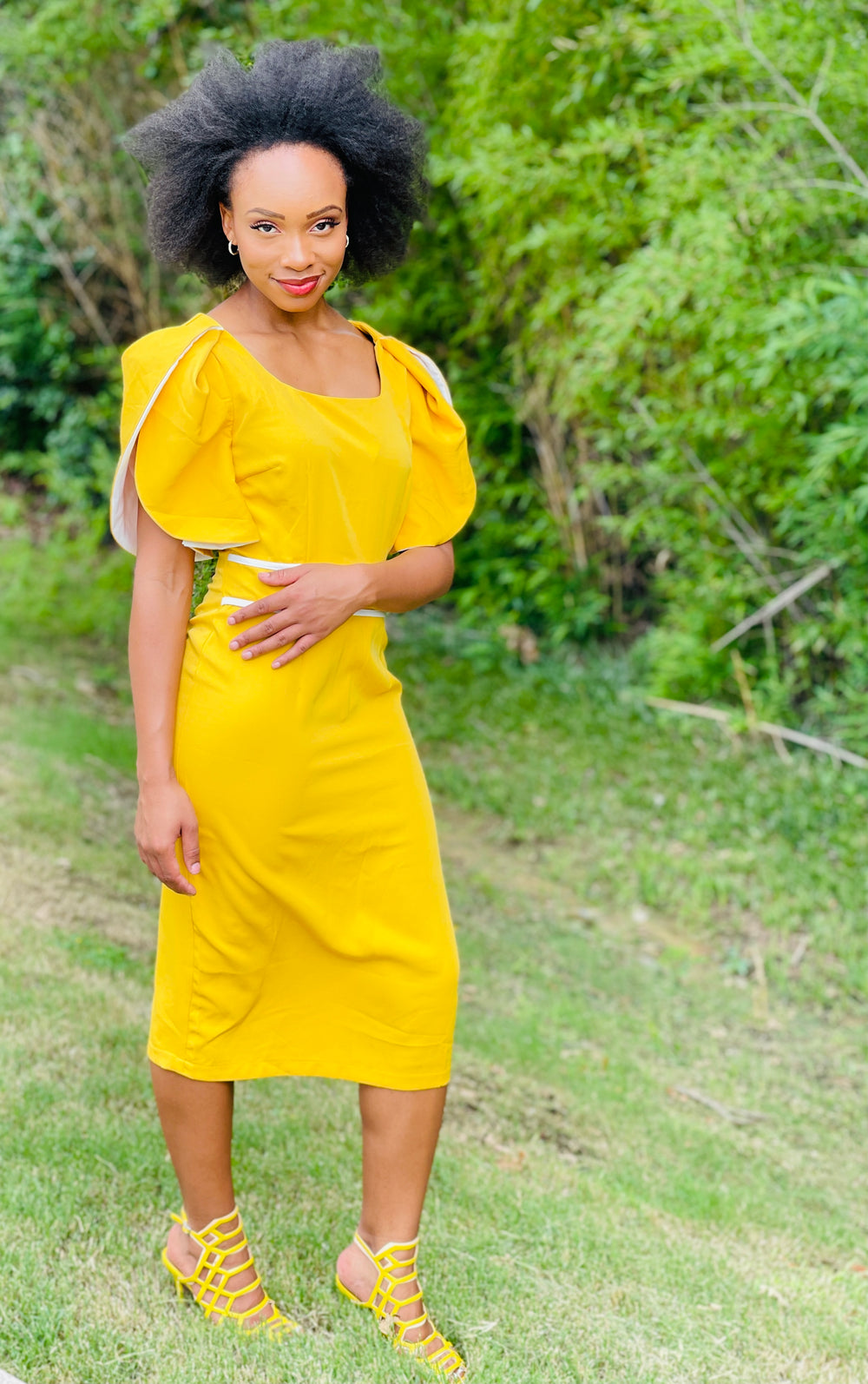 Elegant Square Collar High Waist Simple Lotus Leaf Office Midi Dress