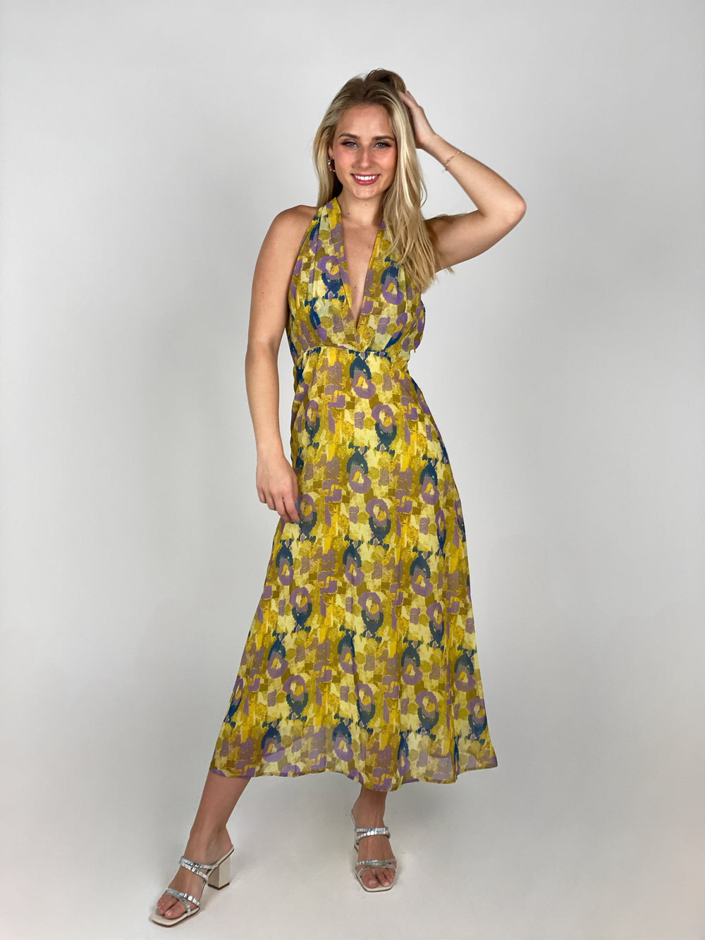 Yellow Mosaic Halter Neck Dress