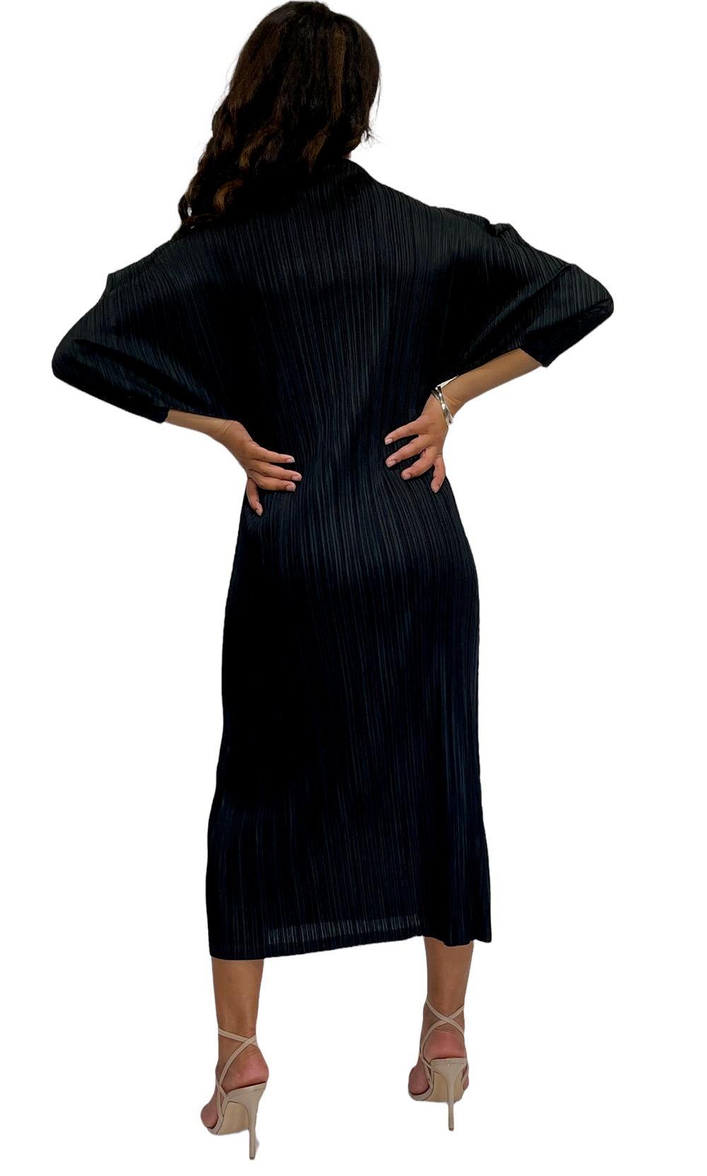 The Black Sassyn Batwing-Sleeve Dress is a must-have for any fashionista. This pleated midi-dress is made of 100% polyester, making it stretchy and comfortable. The batwing sleeves add a touch of elegance to the dress, making it perfect for any occasion.