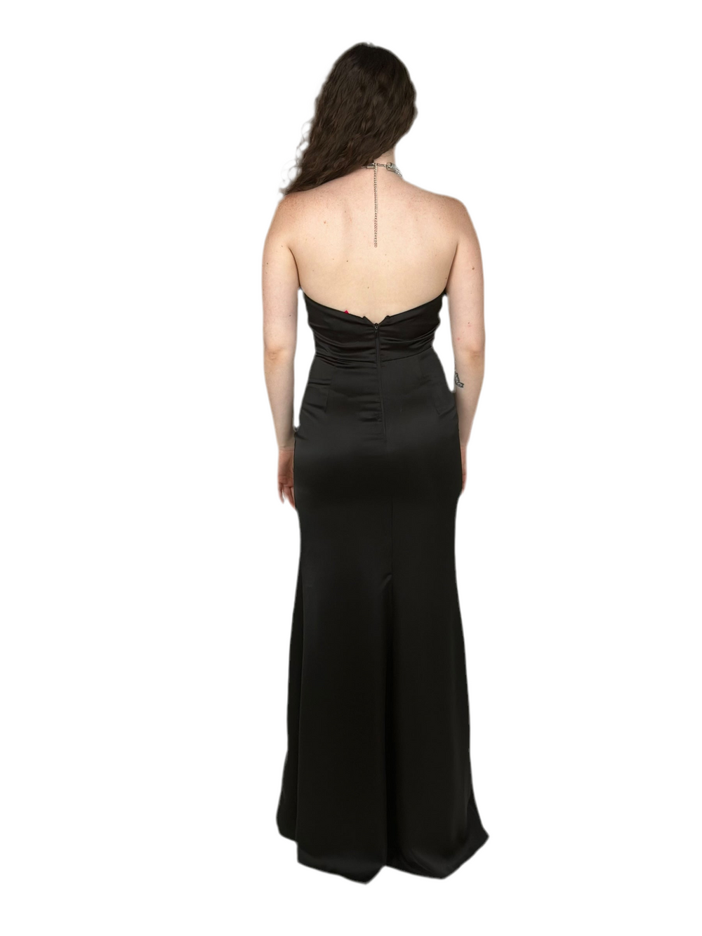 With its sleek black color, this dress is versatile and can be dressed up or down. Pair it with heels and statement jewelry for a glamorous look, or dress it down with sandals and a denim jacket for a more casual vibe. No matter how you style it, this dress is sure to make a statement.