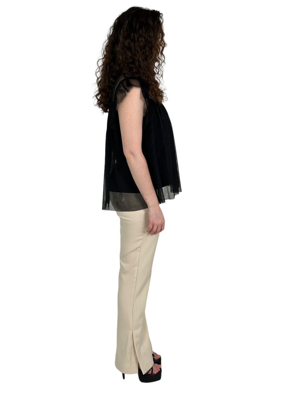 Black Wing Sleeve Mesh Top