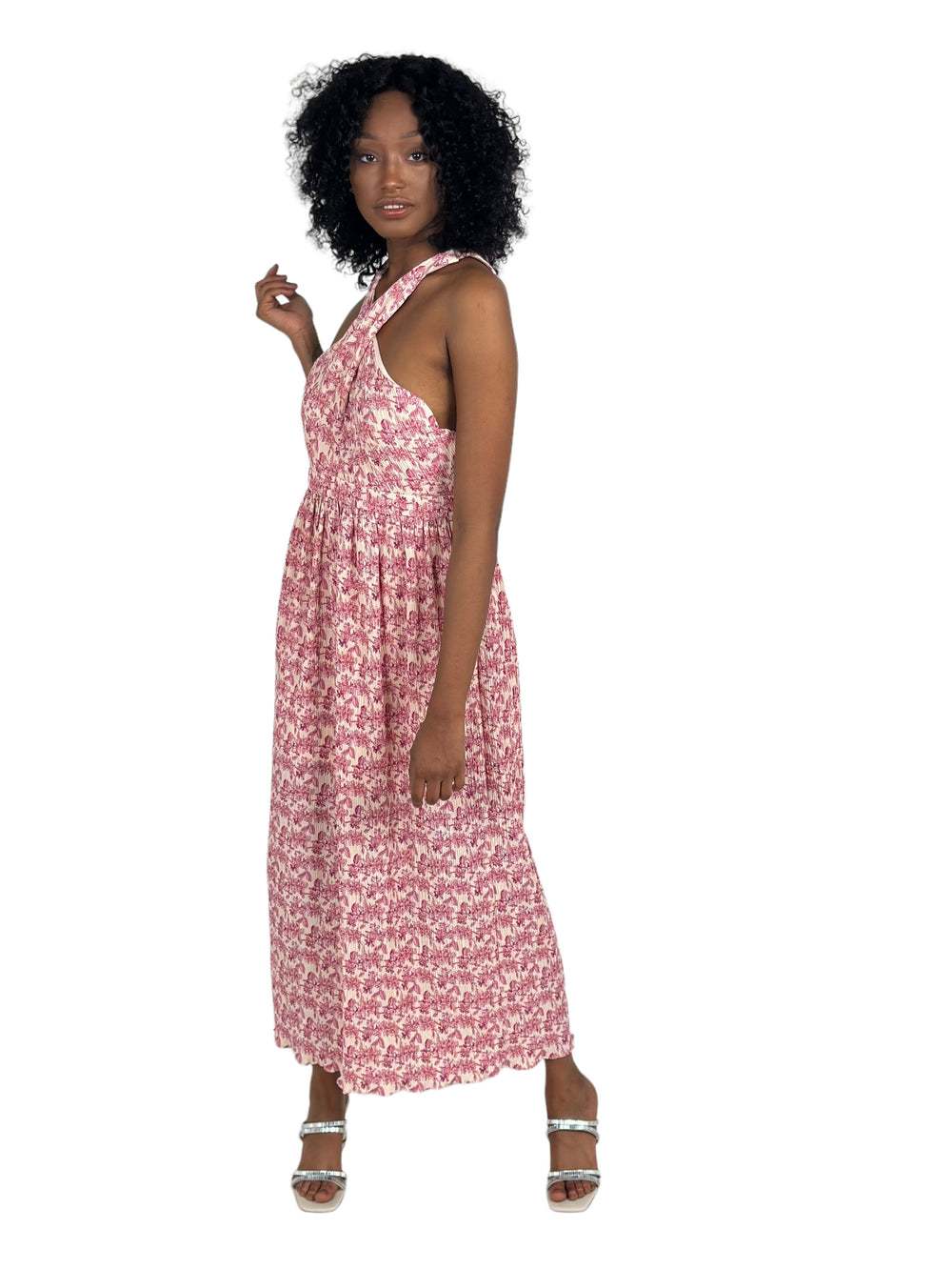 This Springtime Dress is the perfect addition to your wardrobe. With its halter neckline and printed pleated design, it exudes elegance and sophistication. The elastic waistband ensures a comfortable and flattering fit, while the concealed back zipper adds a touch of convenience. Whether you're heading to a formal event or a casual outing, this dress is versatile enough to suit any occasion.
