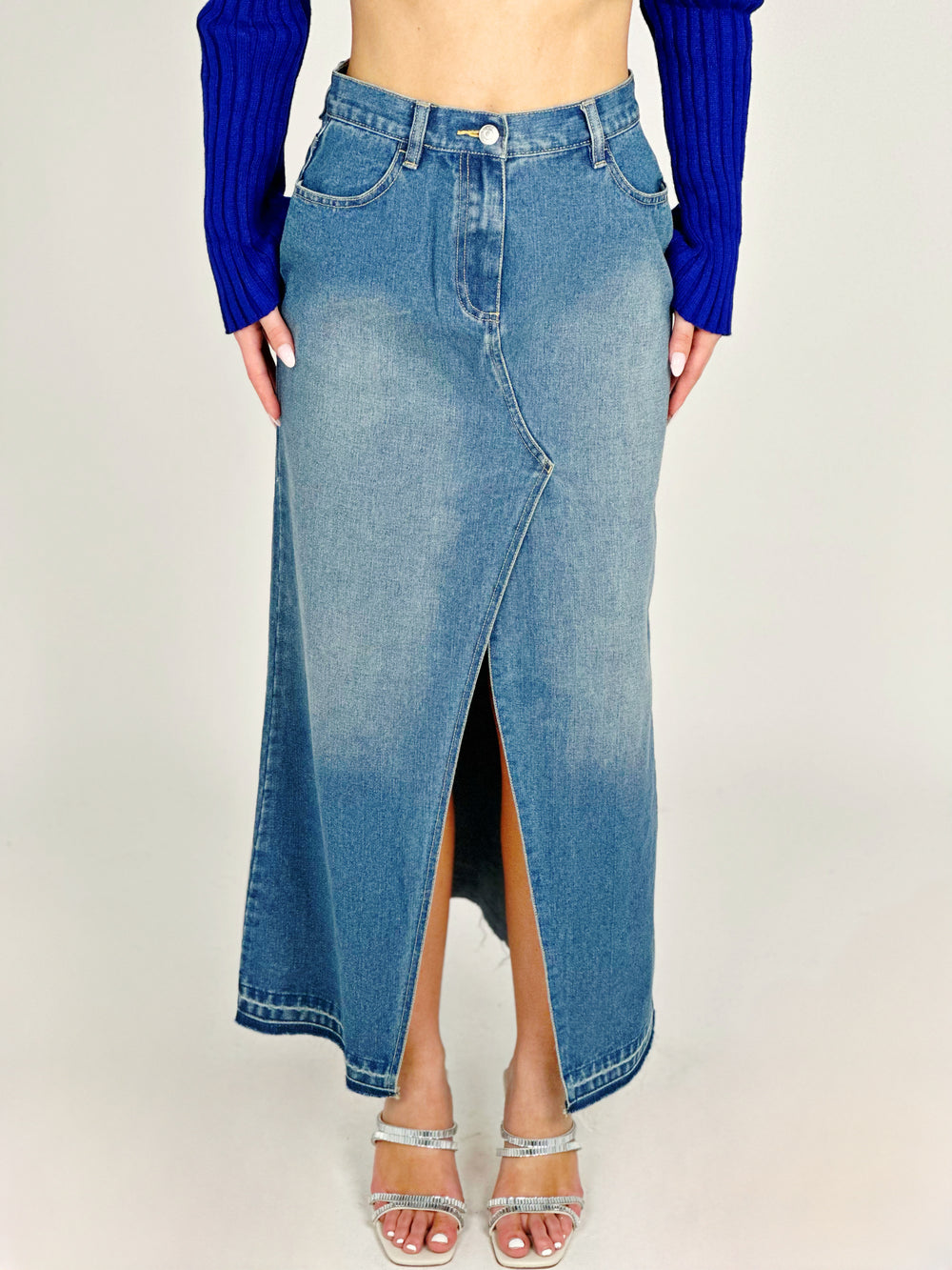 This skirt is perfect for any occasion, from casual days out to formal events. It's easy to dress up or down, and the long length makes it a great choice for cooler weather. The high waist design is flattering and comfortable, and the long front slit adds a touch of drama.