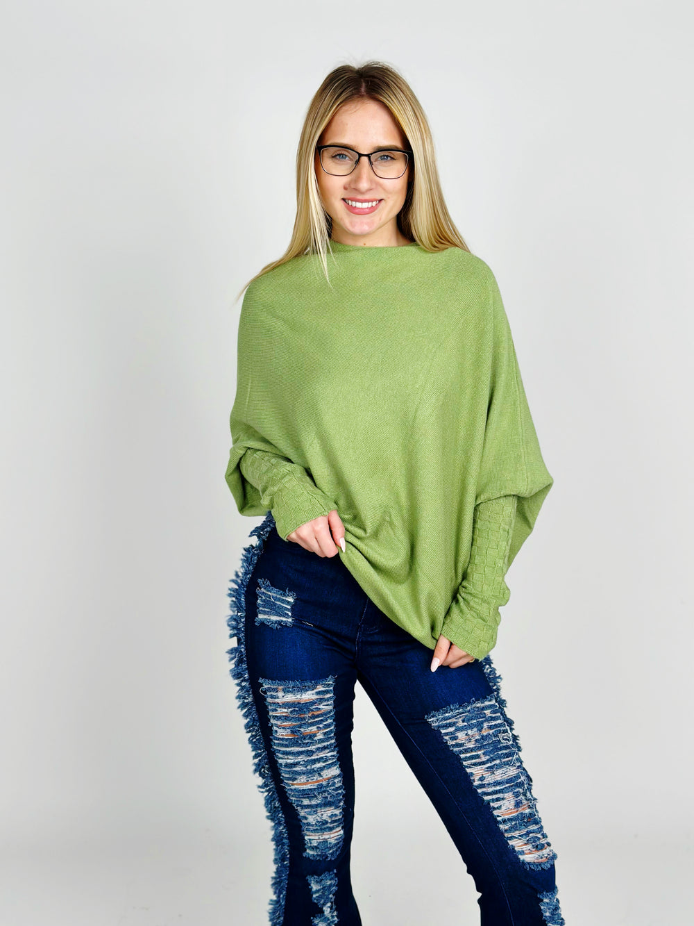 This Green Asymmetrical Sweater from Sassyn Shop is a stylish and comfortable addition to your wardrobe. The soft, lightweight fabric is perfect for layering and the asymmetrical design adds a unique touch. The sweater features cross knit cuffs. The vibrant green color is sure to make a statement.