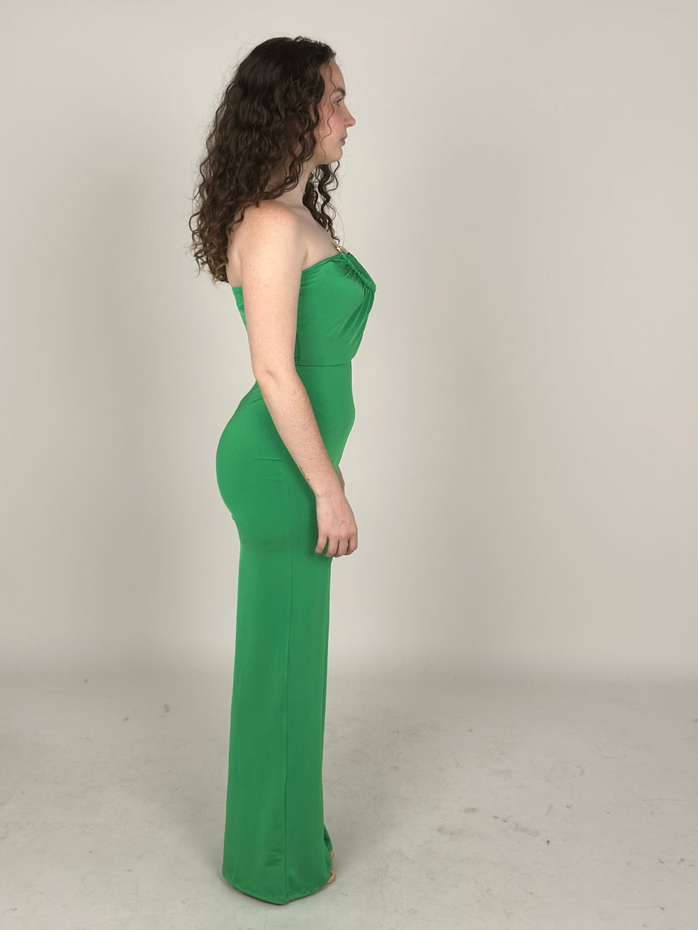 Introducing our Green Off Shoulder Jumpsuit, the perfect addition to your summer wardrobe. This tube jumpsuit features a flattering off shoulder design that will show off your shoulders and neckline. The vibrant green color is sure to make a statement and turn heads wherever you go. The jumpsuit also includes a metal buckle detail, adding a touch of edginess to the overall look. Made from high-quality materials, this jumpsuit is comfortable and lightweight, making it perfect for any occasion. Whether you're heading to a beach party or a night out with friends, our Green Off Shoulder Jumpsuit will have you looking stylish and chic.