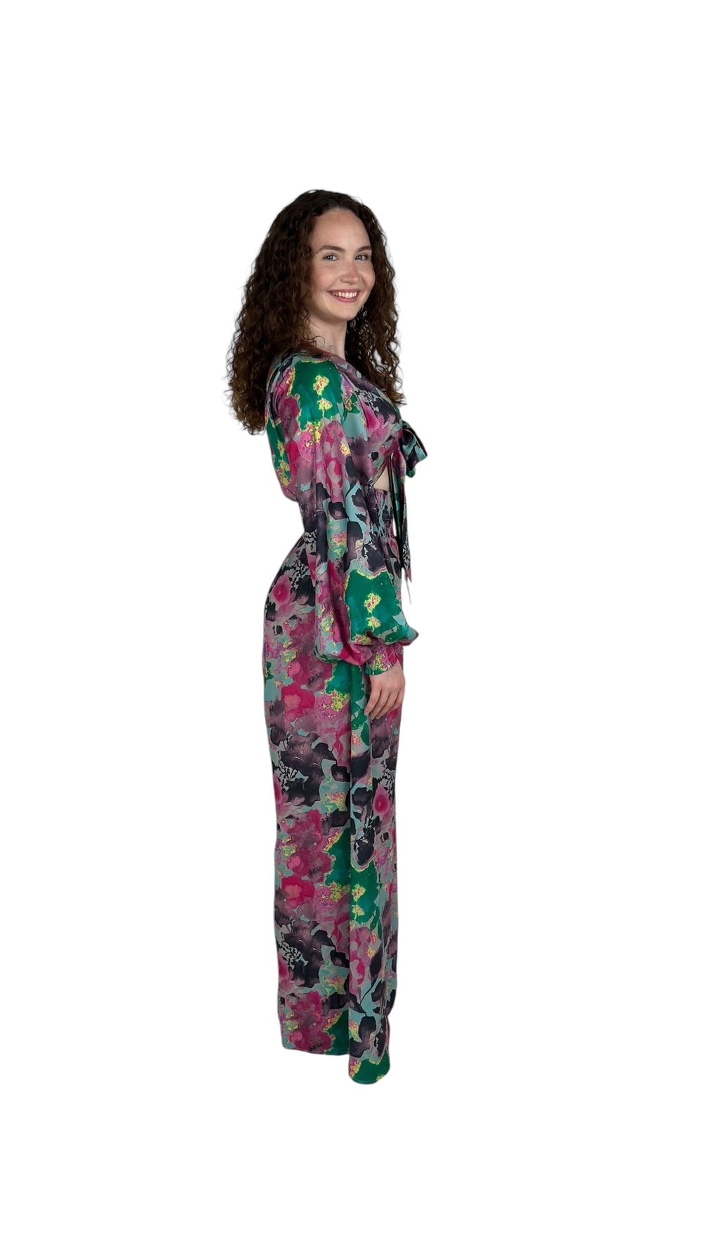Embrace the beauty of nature with our enchanting Green/Pink Long Flowered Jumpsuit, a perfect fusion of femininity and flair. Crafted with a delicate blend of vibrant hues, this jumpsuit blooms with intricate floral patterns.