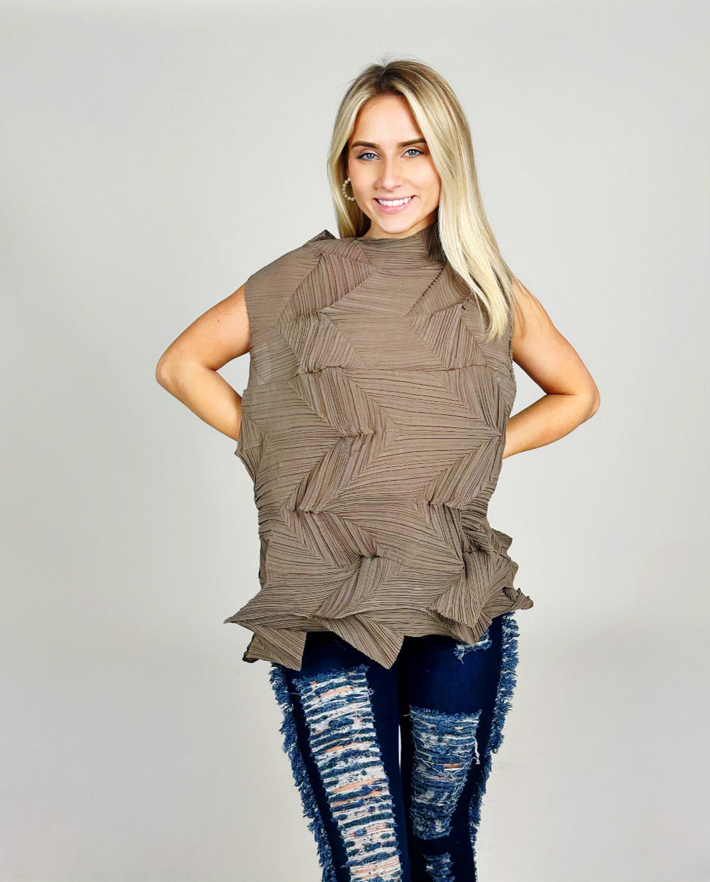 Plisse Sleeveless Top