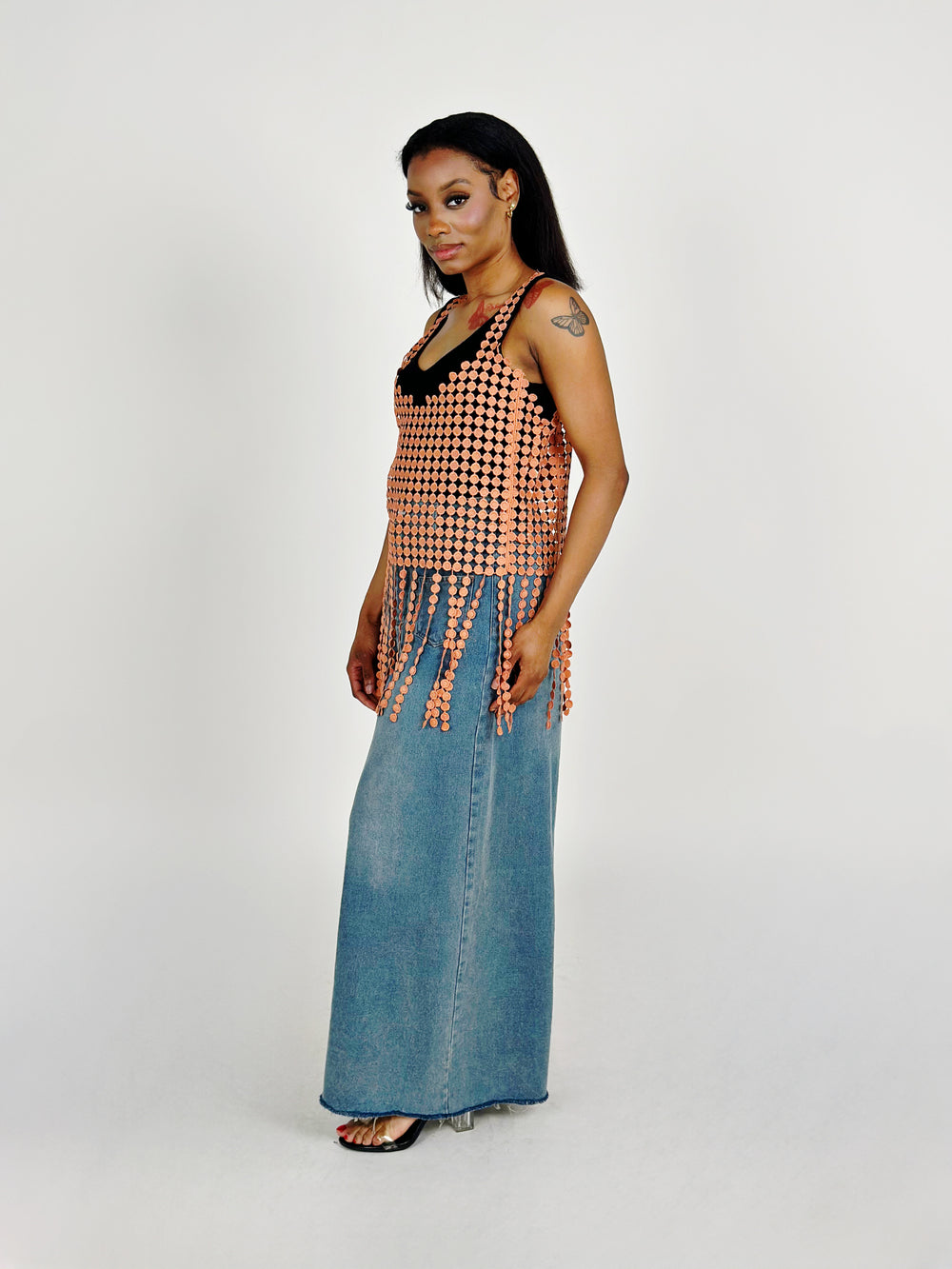 This Terracotta Crotchet Tank Top is a must-have addition to your summer wardrobe. Made from high-quality crochet material, this tank top is both stylish and comfortable. The sleeveless design and deep V-neck add a touch of femininity, while the fringe detail adds a bohemian flair. Perfect for a day at the beach or a night out, this tank top is versatile and can be dressed up or down.