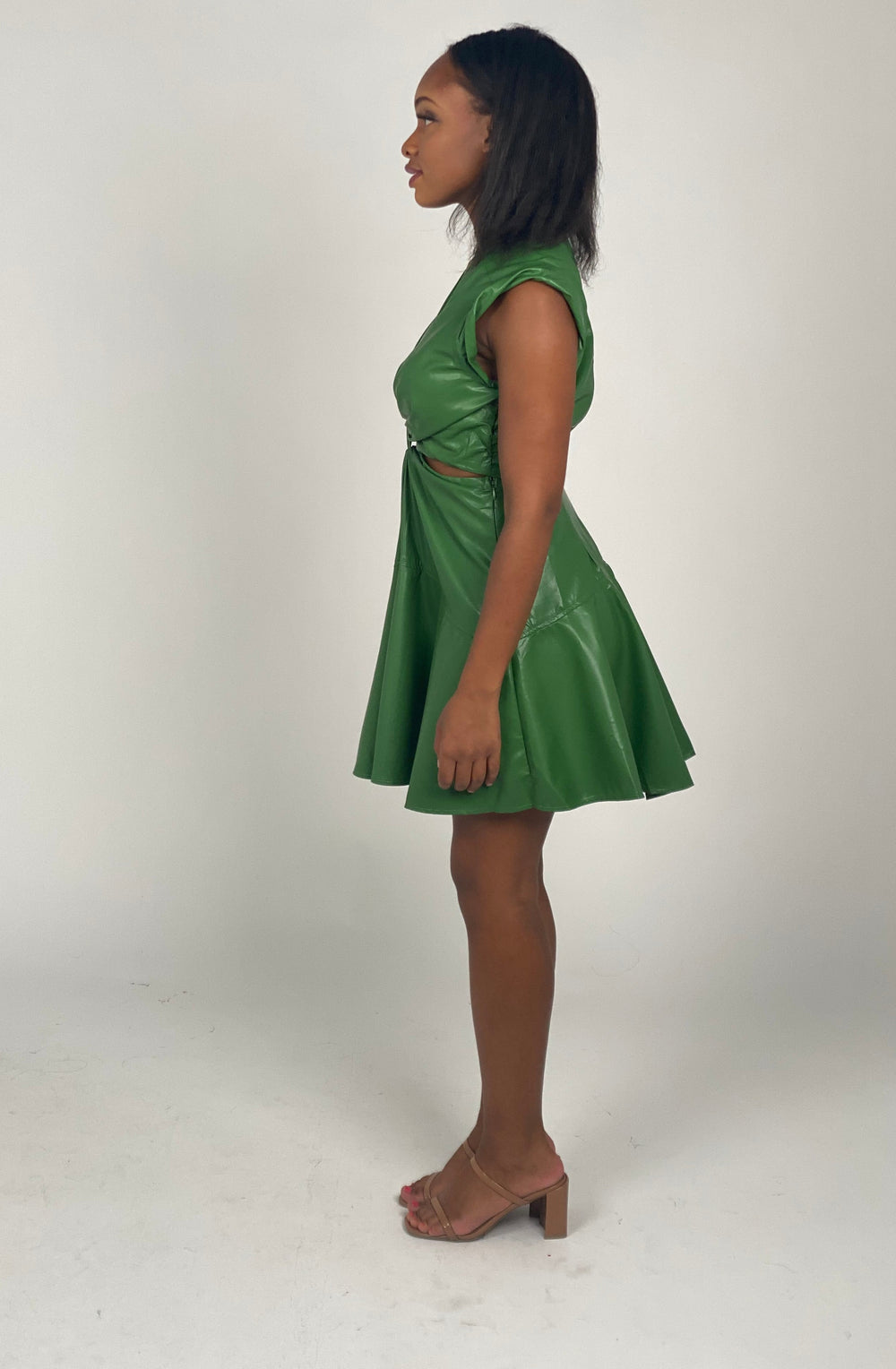 Be bold and make a statement with the Kelly Green Faux Leather Dress.
