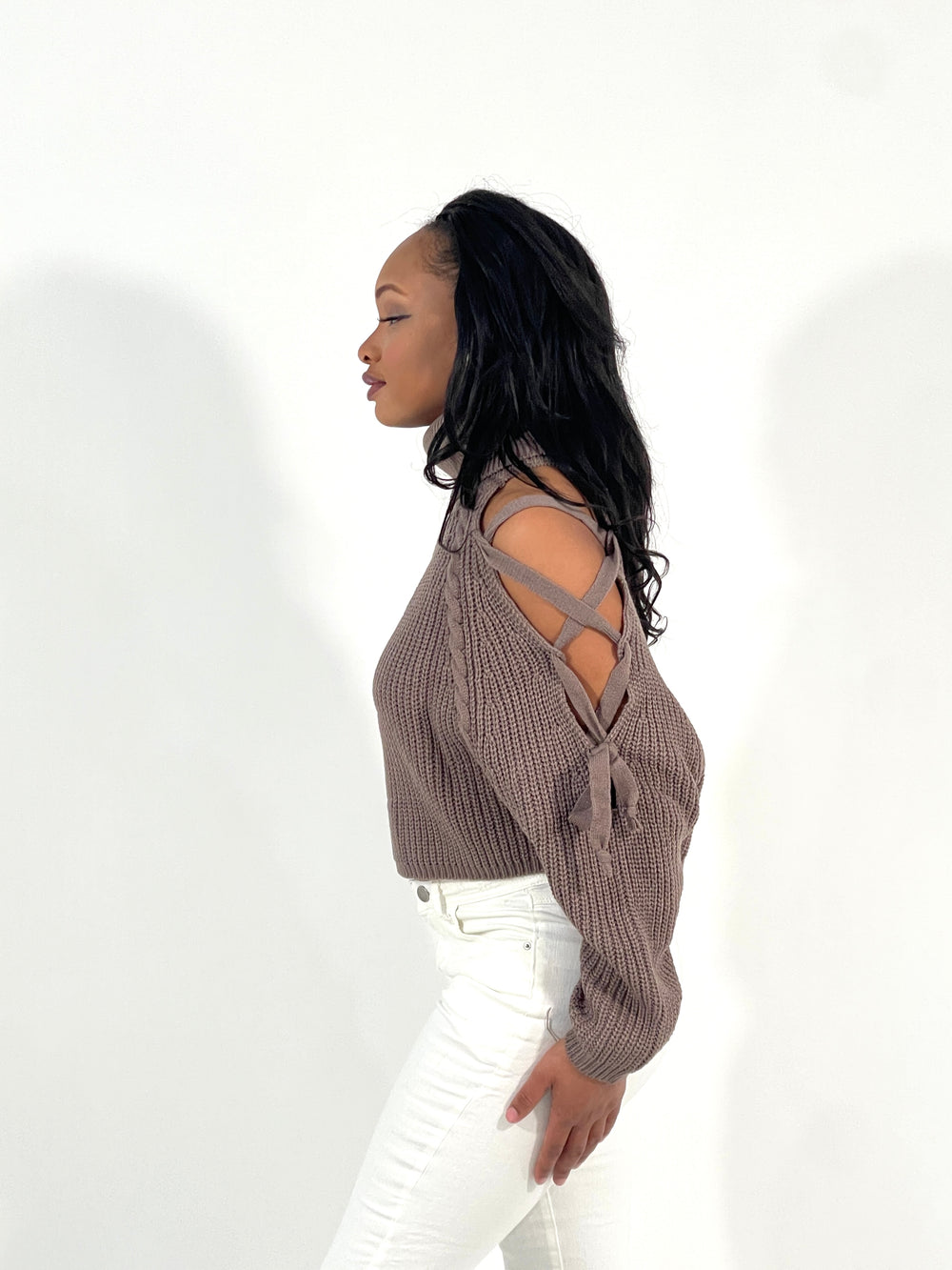 Introducing the Light Brown Knitted Sweater, a stylish and innovative way to stay warm this season. This long sleeve cold shoulder crop sweater is made from a soft knitted fabric, perfect for keeping you cozy and comfortable. The light brown color is perfect for any occasion, from casual days to dressy nights.