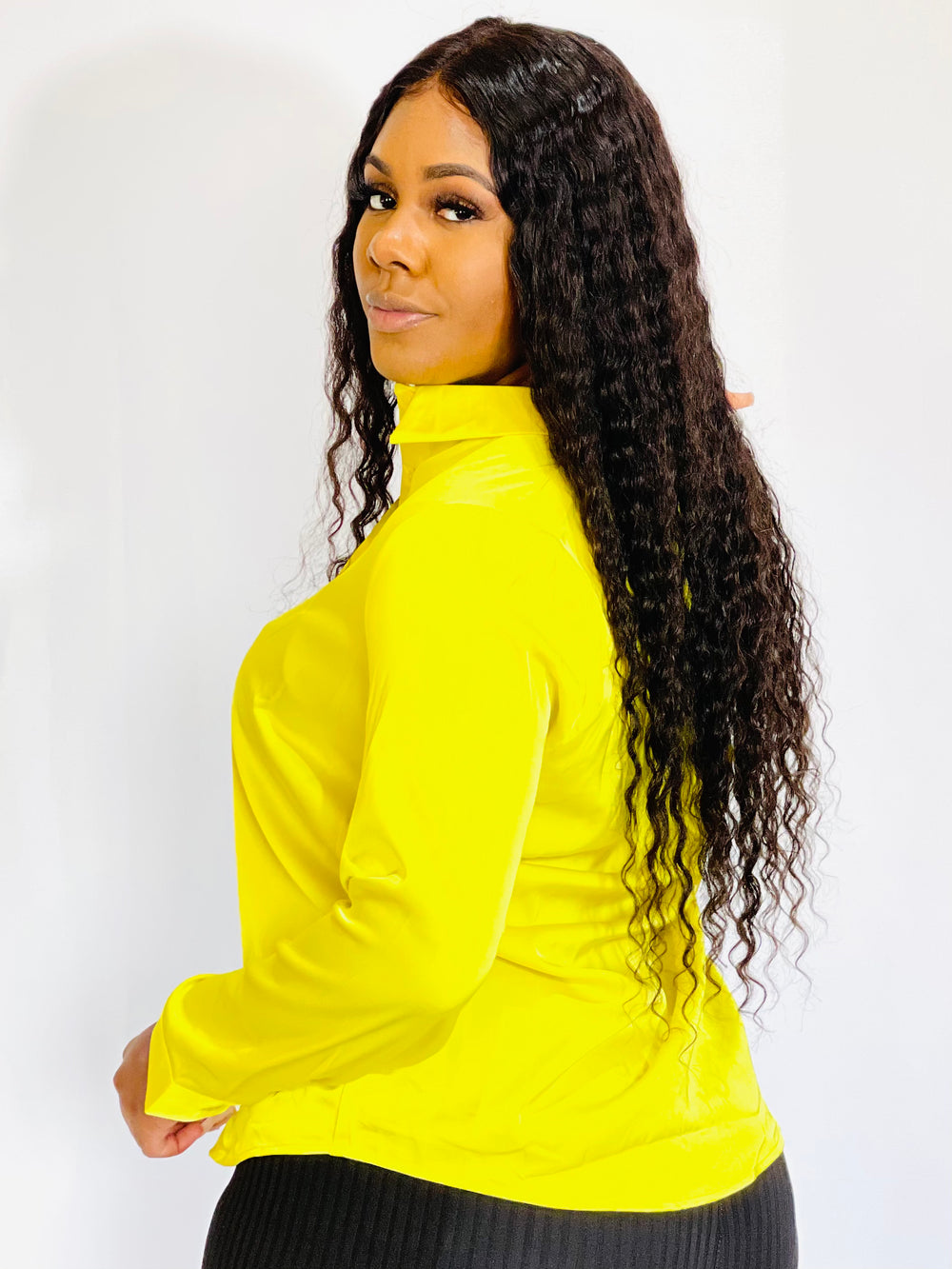 This Lime Button Down Satin Blouse is a stylish and sophisticated addition to any wardrobe. The long sleeve design is crafted from a luxurious satin fabric, giving it a soft and silky feel. The bright lime color adds a pop of color to any outfit. The button down front and collar give it a classic look that can be dressed up or down.