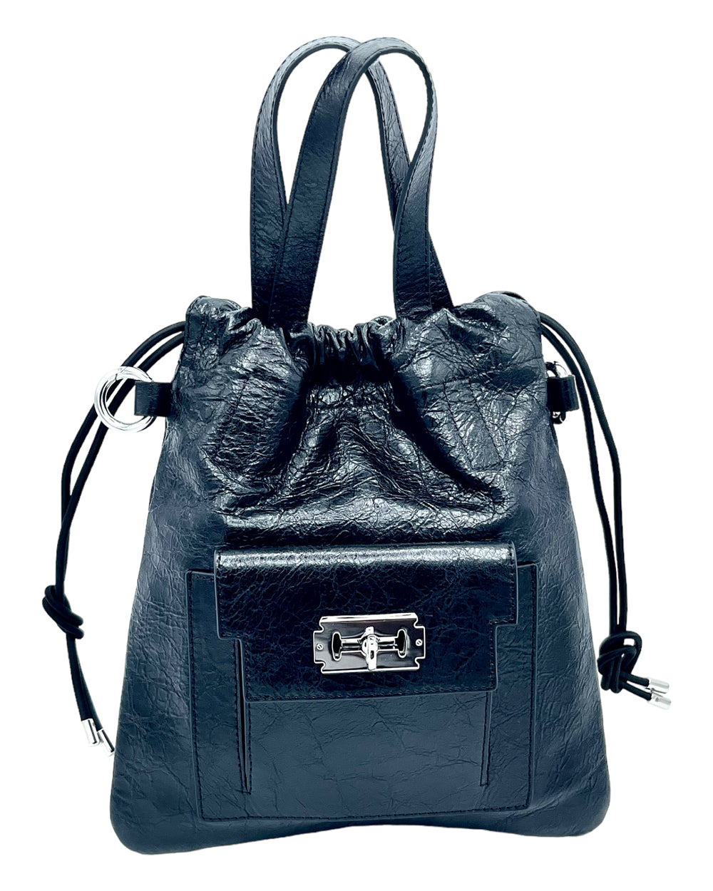 This Black Distressed Leather Purse is the perfect accessory for any outfit. Crafted from genuine leather, it features a short handle and a shoulder strap for easy carrying. The black elastic draw string and magnetic closure keep your items secure.
