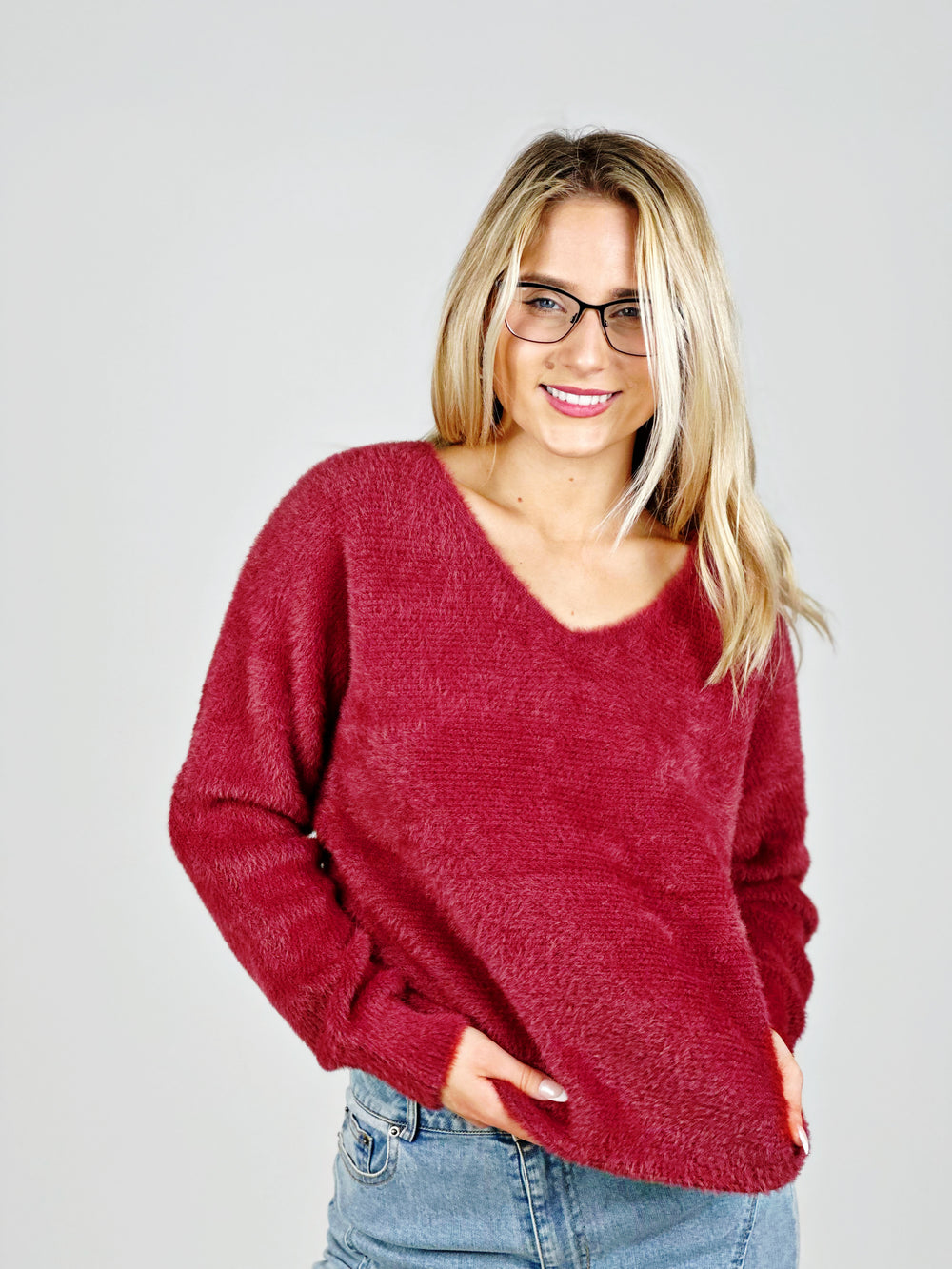 This sweater is perfect for any season. Wear it with jeans and a t-shirt for a casual look, or dress it up with a skirt and heels for a night out. No matter what the occasion, this Burgundy V Neck Sweater will be sure to make a statement.