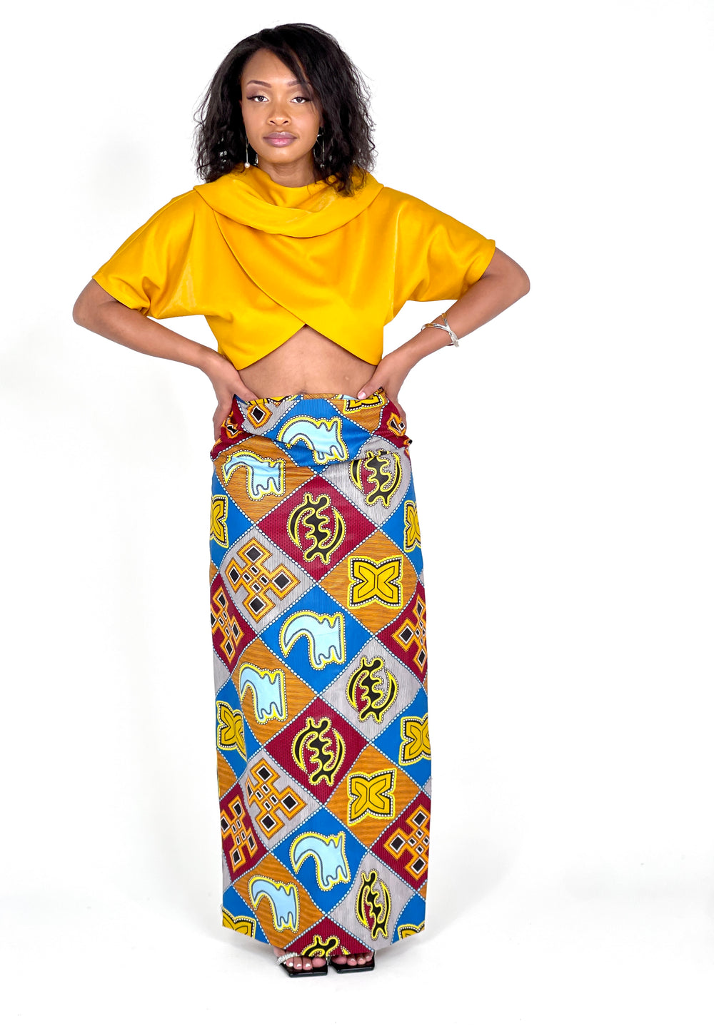Sassyn Africa Yellow Two Piece Skirt And Crop Top